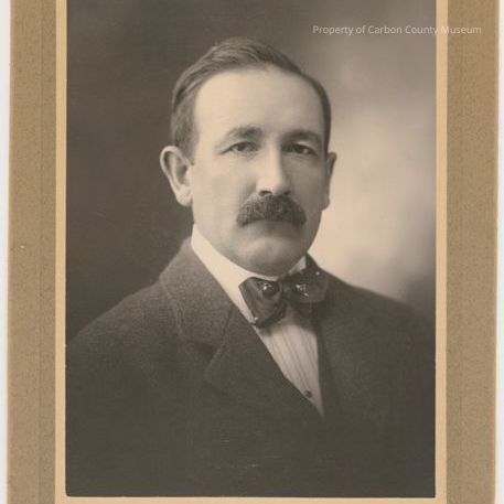 update 2009: Black and white print. Photo of a gentleman with a mustache. He has on a suit jacket, bow tie and pin striped shirt. He has short hair parted on the left combed to the right.