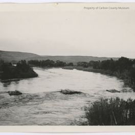 Written on back in blue ink: "Platte River at Ft. Steele, Wyo. Given by Mrs.. A.D. Sager, Ft. Steele Wyo."