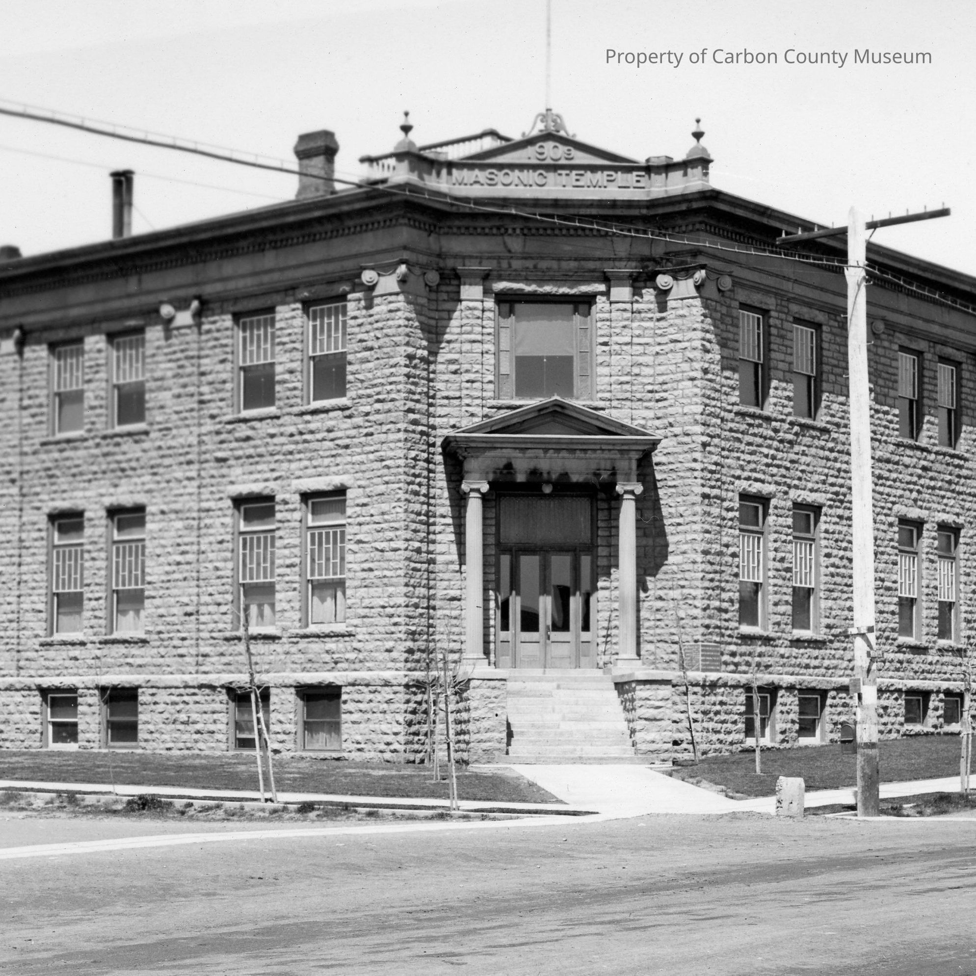 4. Black and white copy print of "Masonic Temple in 1916." Similar to 1962.422.0134 and 1970.528.0053. Stain on back.