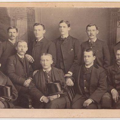 Owl's Club, 1880's. Back row: Sam Ash, A. F. Thode and Bill Peds. Front row: Frank Robb, Harry Kelly, Fred Kelly and Charles Polley.
