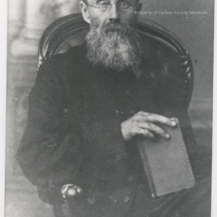 Written on back in black ink: "Rev. R. E. Huntington who was rector of St. Thomas Episcopal Church in Rawlins starting in the 1880's (crossed out and written in) "1886-1889". He died May 25, 1905 at the age of 85"