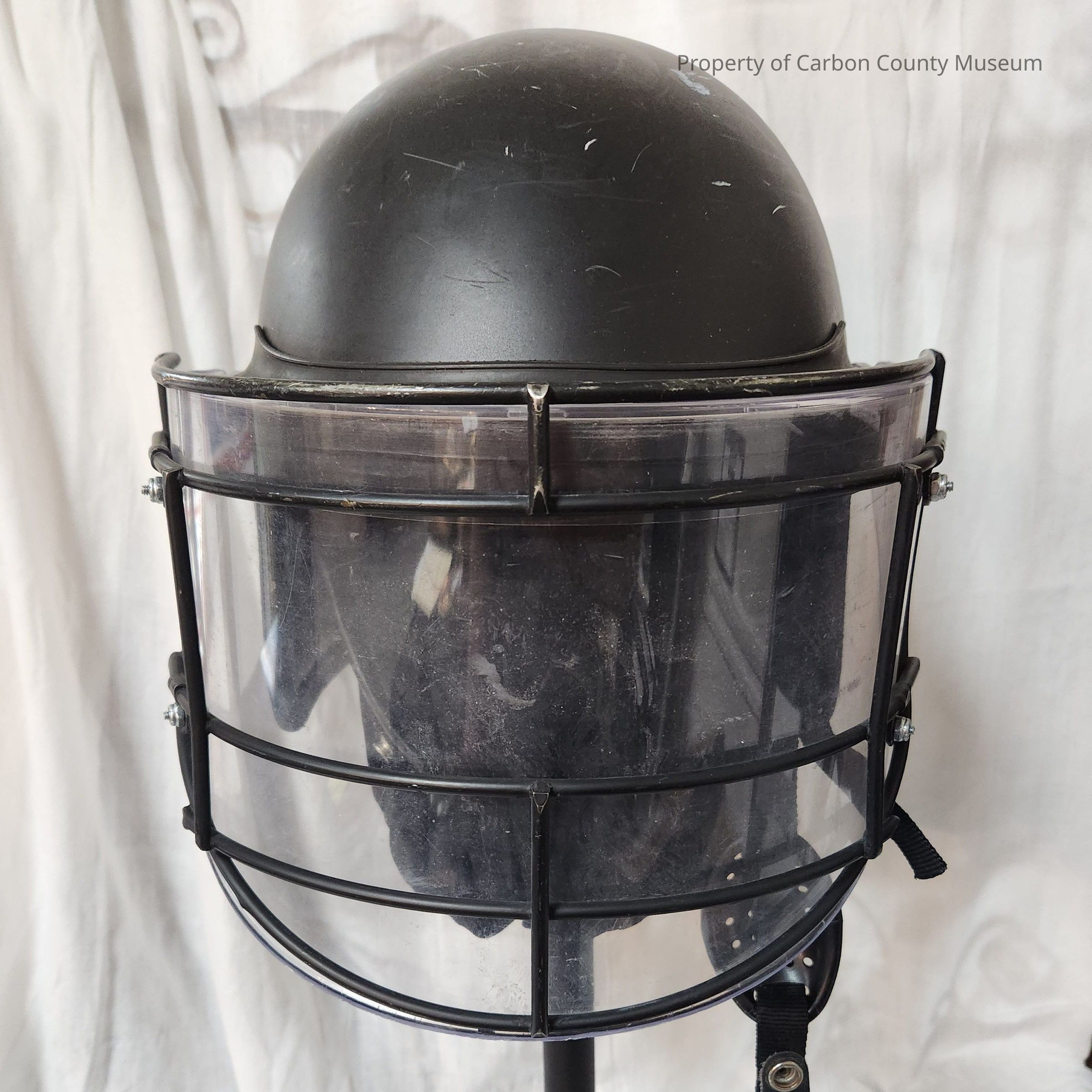 Riot gear helmet with face shield used by the Wyoming Department of Corrections.