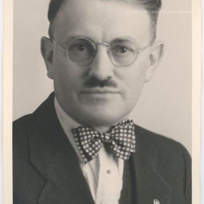 Two studio portraits of Dr. Charles W. Jeffrey. Image of head & shoulders show his dark suit, white shirt & polka dot bow tie. He has a lapel pin on the left of his suit jacket & a curled handkerchief in his pocket. His hair is dark & parted on his right & he has a small mustache. He also wears round glasses.
