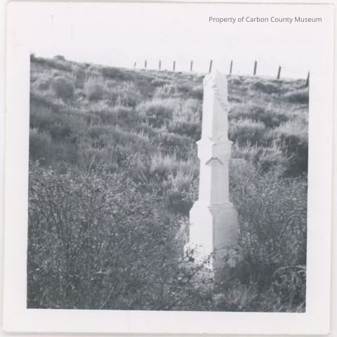 Written on back in black ink: "Grave of Robert Widdowfield in Carbon Cemetary[sic] {cemetery] "taken in 1966" Sheriff murdered on Rattlesnake Creek near Elk Mountain on Aug. 18, 1878, murdered by "Bid Nose George" "Dutch Charlie", Et. al.