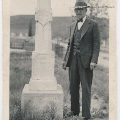Written on the back in pencil: "Monument of Tip Vincent [sic Vincents] Rawlins Cemetery June 1937"