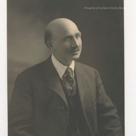 Update - 2009: Black & white print. Studio portrait. Half-length of a man dressed in a dark 3-piece suit, dark tie & white shirt. Man is looking to the viewer's right. He has a mustache & is balding on top.