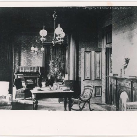 Written on back in blue ink: "Interior of home built by Homer Merrill on South Side of UPRR" "Copies by State." In pencil: "Page 50, pix 2". 3 7/8 x 7 1/4".