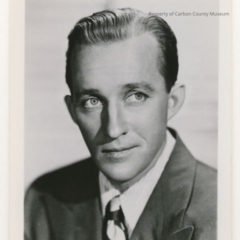Update 2009: Black and white image of man wearing dark suit with light shirt with contrasting stripe, neck tie with light and dark thick strips, (Bing Crosby).