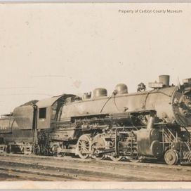 Black & white print. Snapshot. Image of a steam locomotive tender & boxcar in a railyard. Cattle cars in background at right. Number painted on engine front lamp placard near smokestack & on side of tender: "2302".