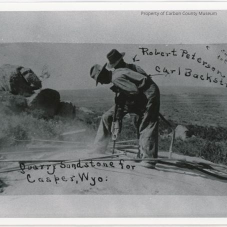 Written on sandstone from right of photo: Carl Backstrom Robert Peterson Casper P.O. Quarry Sandstone for Casper, Wyo.