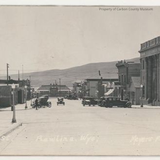 Printed in white on original negative: "Fourth Street Rawlins, Wyo. Meyers Photo"