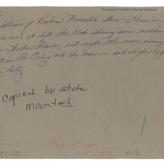 Stamped in black: "Copy provided by the Wyoming State Archives & Historical Department" "Neg. No. 5246"