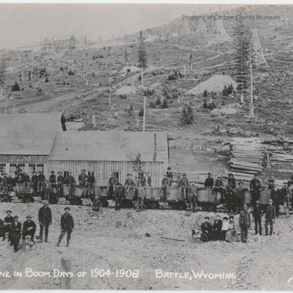 Printed on lower edge in white from negative process: Rudefehu Mine in Boom days of 1904-1908 Battle, Wyoming Sanborn x 1256