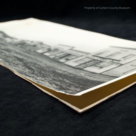Update - January 2010: Black & white print attached to ivory colored matboard which has been cut off. Image shows an early day town site with multiple sized wooden frame & log buildings in a long row. A large barren hill is in the distance side left. A very tall pole is seen at street edge at center of print. Names of the businesses read: L to r in near foreground: Dry Goods; Hardware; City Restaurant; G. W. Hugus & Co; J. W. Hugus Company; Bankers General Groceries. The foreground depicts an uneven road composed of dirt & strewn unknown objects. Barrels are lying next to the tall pole at base. Area is from 3rd Street of North Front to 9th Street. Date is post 1883.