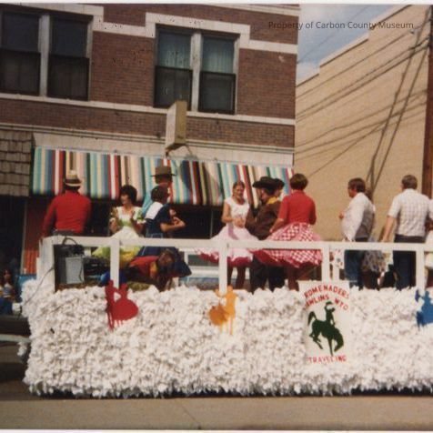Written on back: "Parade, 1979" (blue ink), "Rawlins, Wyo Fair Parade 1979, Promenaders Float" (black ink)Collection