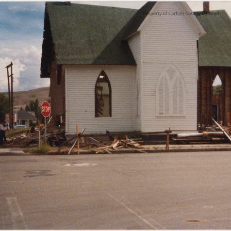 Written on the back: "Destruction Old Methodist Church, 1979" (blue ink), "1" (black ink)Collection