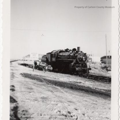 Written on back: "Rawlins, Wyo, Moving big engine to park next to hospital" (black ink), "82C" (stamped)Collection