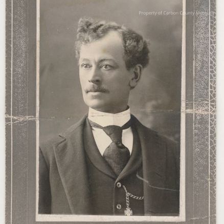 Update 2009: Studio photo. Man with light curly hair, receding hairline, mustache. Three piece suit with chain hanging into pocket possibly for his watch. Big white tie. Big eyes. Picture has a big fold in the middle. The Canova Studio Eaucline. On the back name is written: L. J. NelsonCollection