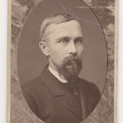 Photo of a man with light colored hair combed to the side with a dark colored beard. In a dark suit and white shirt. Unknown.