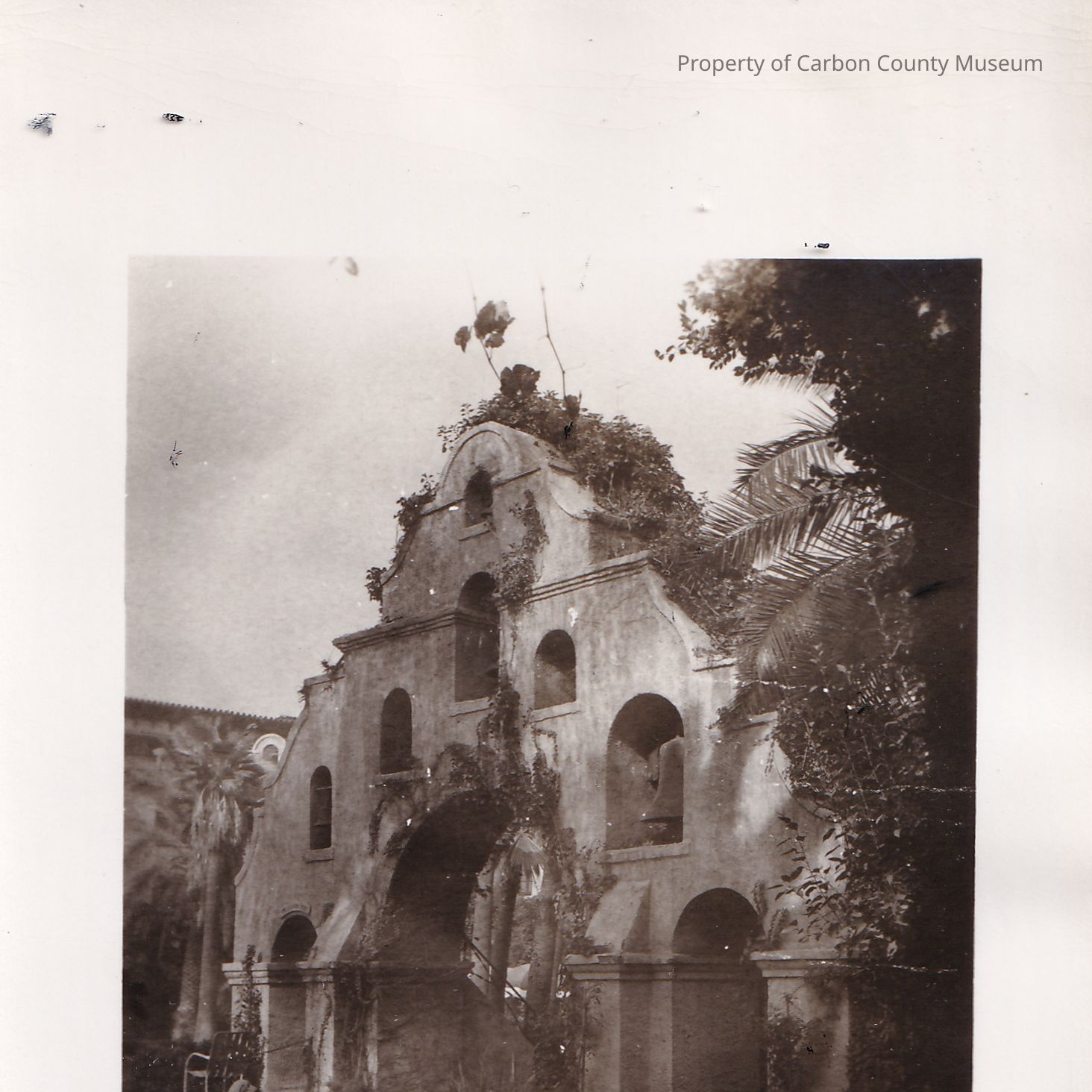 a. 2.5" x 3.5" image of a Spanish mission type building.