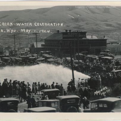 Written on original negative in upper left: "Sage Creek Water Celebration. Rawlins, Wyo. May 1, 1924".