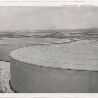 Written on back in blue ink: "Two 7,775,000 gallon tanks built in 1948 & 1949. Note cathodic protection on these tanks" "Davis"