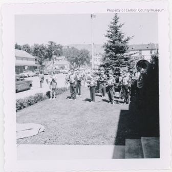 Written on back in blue ink: "Hanna Band 8-23-1957" "Rawlins Spring[sic] Springs marker dedication".