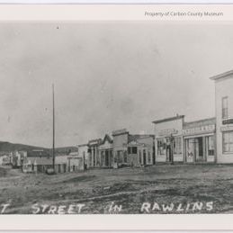 Written on bottom in white on original negative "FRONT STREET IN RAWLINS 128".