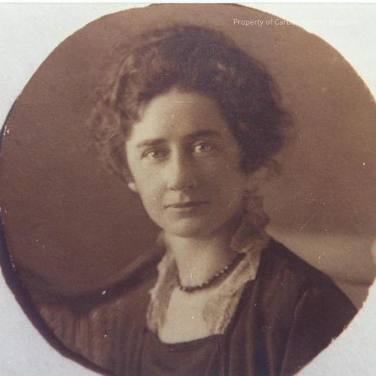 B/W portrait of Sarah "Sadie" Helen (Malia) Larson (1884-1953), wife of Oscar Larson. Photo appears to have been cut down for mounting in a circular frame at some point.Collection