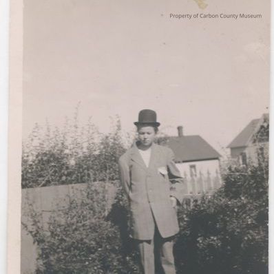 Written on back in black ink: In back yard of parents home on 105 W. Buffalo.