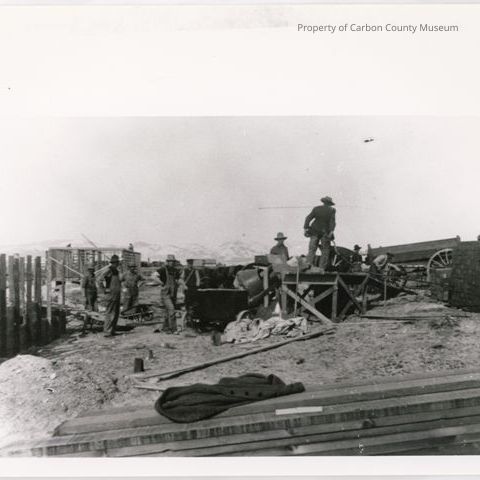 Written on back in black ink: "Construction of Wyoming State Pen at Rawlins".