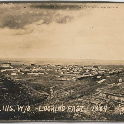 Written on original negative on lower edge: "Rawlins, WYO. - Looking East, 1884 [in square] Copy by Meyers"