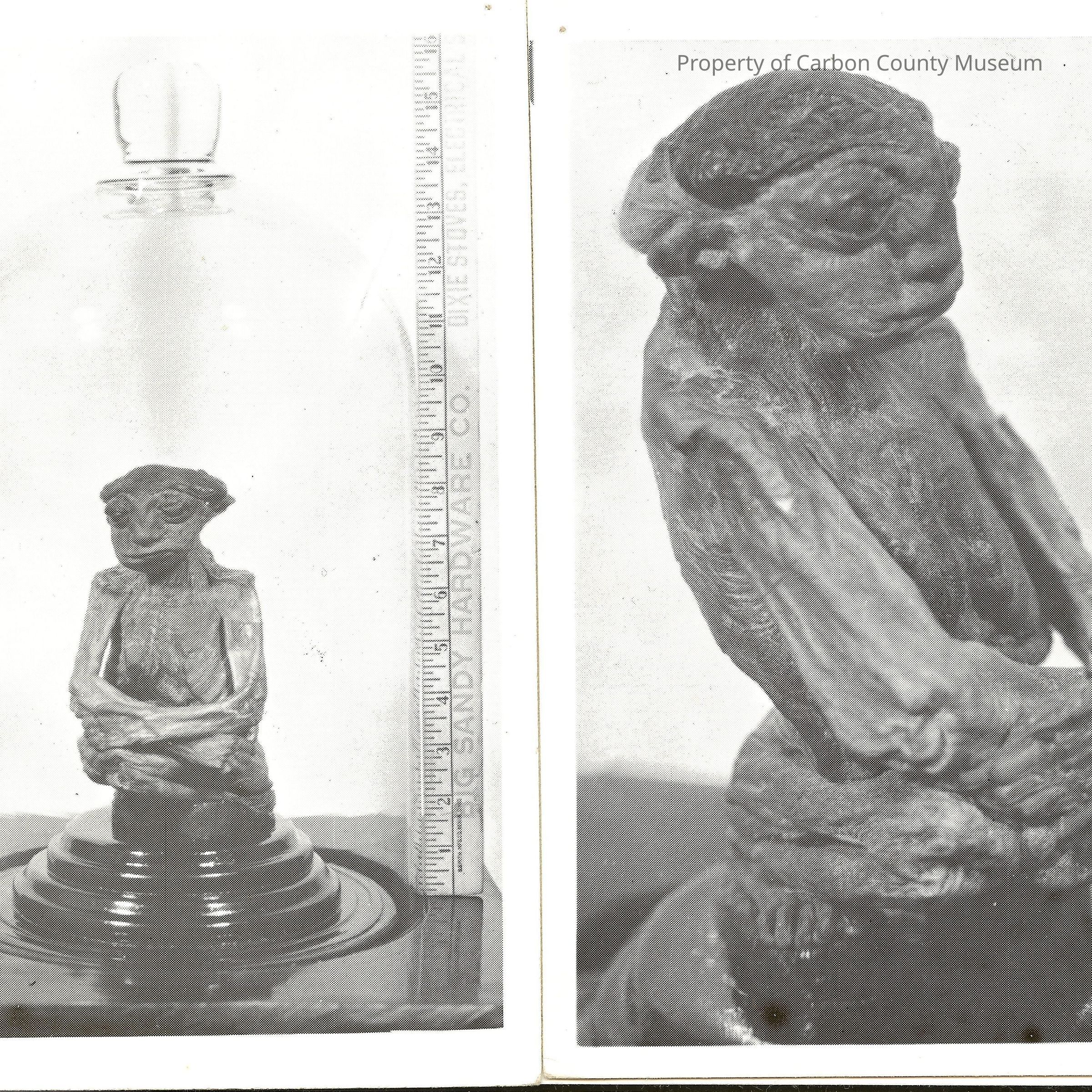 View 2: 5 3/4 x 3 3/4" Closeup of a small mummy on a pedestal.