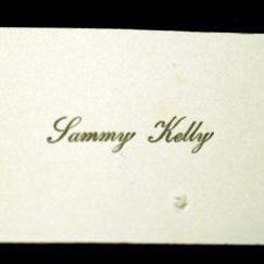"Sammy Kelly" (Note: The Item is in Box 2) Update 2013: Printed in black on small calling card "Sammy Kelly" in serif font.