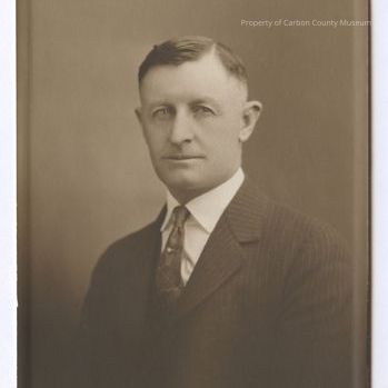 Update 2008: Black and white studio portrait of W.W. Daley at middle age. he has dark short cut hair, side left part and light colored eyes. He is wearing a dark pin striped suit, white shirt, with neck tie with tie tack on upper portion of tie. Embossed on bottom right corner in tiny print: Walker, Cheyenne.