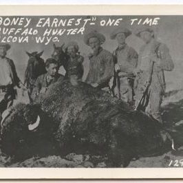 Printed on the front top of the card, "Boney Earnest" one time Buffalo Hunter Alcova Wyo. 129 printed on bottom right corner.