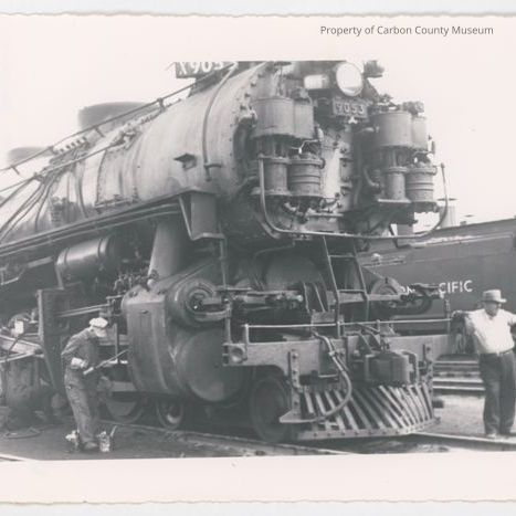 Written on back in blue ink: "Louie Kelleher-Engineer. Cecil Campbell-Yard Master. Rawlins, Wyo."