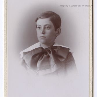 Update 2008: A black and white print affixed to white matboard with W. J. Johnston, printed in brown script at bottom left edge of mat. Rawlins, Wyo is printed at bottom right edge.