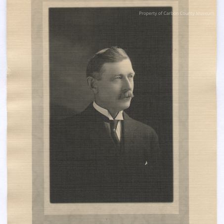 Update 2009: Photo of an elderly gentleman with a mustache. His hair is combed back and is cut short. He has on a dark suit with vest, dark tie and a collared white shirt.