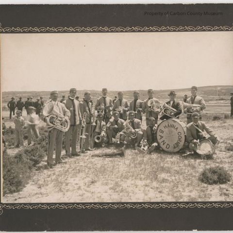 Hanna Band: Ed Williams, Joe Woods, Burton ?, Bill Hughes, Ole Olson, ? Alex Greenwood, Charles Miller, Tom Love, ? J. Choate, O. Buehler, Sam Dickson, W. J. Rodds.