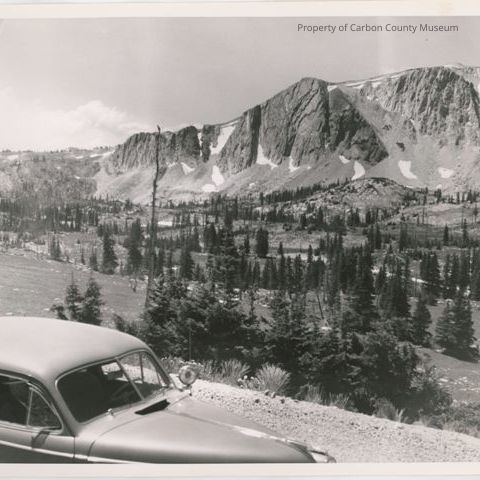 Written on back in blue ink: "Snowy Range. Given to me by Geo. Abbott".