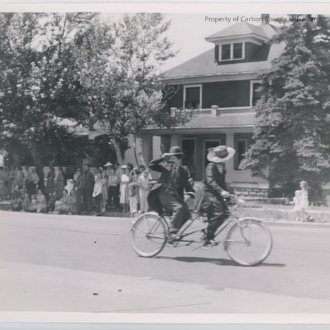 Cheyenne Frontier Days, Bike built for two in Parade, 1956.