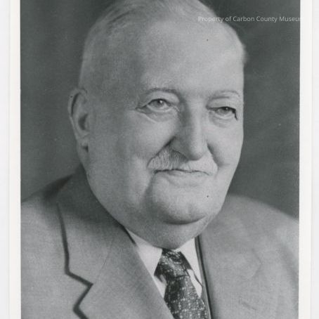 Black and white copy print of an elderly man in a grey suit with checked tie. He has white hair and a mustache. Head and shoulders view. Written on back in pencil: "H. Larsen".