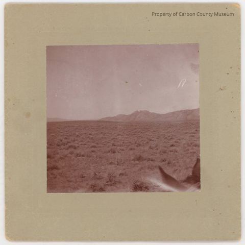 Written on back in brown: "Split Rock, Wyo. in distance July 1899".