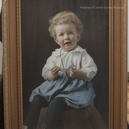 Update 2013: Portrait of Owen Lee Stitt, Jr. as a young boy (toddler). He has blond, wavy hair. It is a colored studio portrait. The wood frame is a wide ornate metallic gold color. Outer frame measures 18 3/4" x 26 3/4." A letter handwritten on the back of the frame reads: Donation for Carbon County Museum at Rawlins, WY: "This picture is a photograph of Owen Lee Stitt, Jr., son of Helen Childs Stitt (Johnson) and Own Stitt, Sr. His grandfather was John Childs, a pioneer of Carbon County whose daughter at one time owned the famous "old Cottage Hotel." This picture was given to me by his niece Katherine, (I don't remember her name) Mrs. Doctor McNamara would know the history. Signed Mrs. Fern? Ferris? Kimmel." This letter was placed in the original donor book under McNamara, Blanche. This photograph had previously been given T1140.Collection