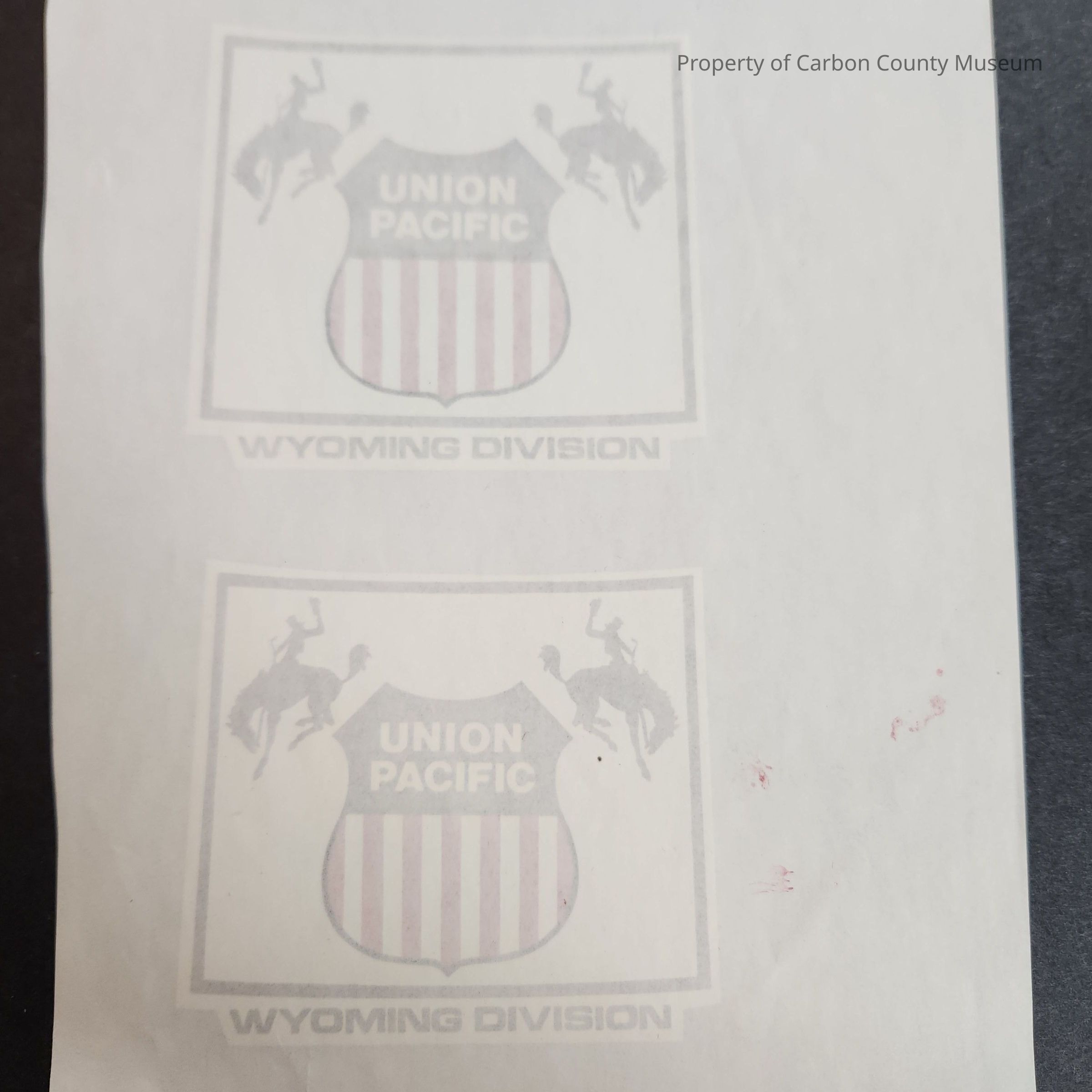 Two Union Pacific Wyoming Division decals on a thin sheet of paper.