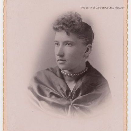 Update 5/2010: Two black and white studio portraits on pink cards. Image of a woman wearing a silky wrap draped around her shoulders gathered in front with a clasp. She has on a large pearl necklace and small earrings. her hair is curly on top front with remainder pulled back. Printed on bottom in gold: "Lasswell GFL 421 S. Adams St. Peoria, Ill."