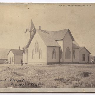 Printed in black on front from negative left bottom: Methodist church, Rawlins, Wyo.