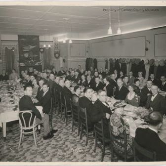 Written on back in blue ink: "Rawlins Rotarians, Lions & BPW Clubs Banquet March 1934"