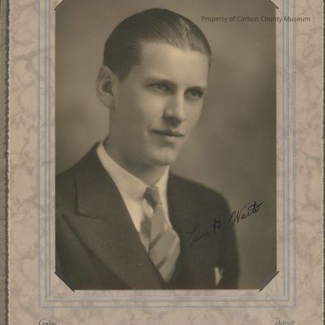 Update 2008: Black and white print. Bust photo of a young man in dark colored suitcoat, white shirt, and striped tie. His hair is parted down the middle and combed back. he has a half smile on his face.